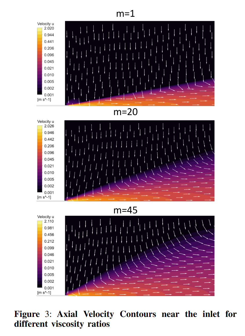 In this timeframe, he conducted simulations of viscosity-stratified jets using RANS closure models in ANSYS Fluent. Our primary interest was to understand how the injection of a low-viscosity fluid into a high-viscosity ambient, without any density anomaly, affects the flow behavior and statistics.